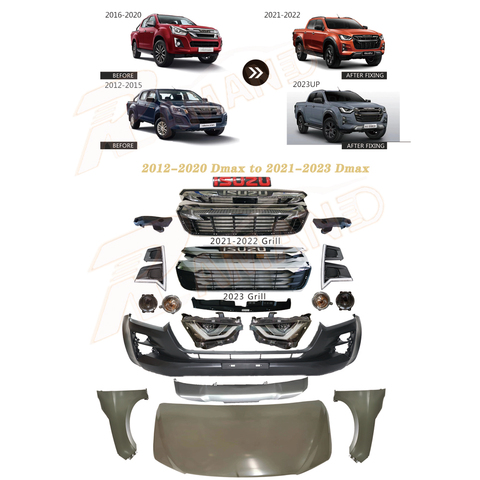 Kit de conversão para Dmax 2012-2020 Atualização para DMAX 2022 2023 Bodykit Preto Padrão Completo Nariz Dianteiro G05 Pára-choques Dianteiro